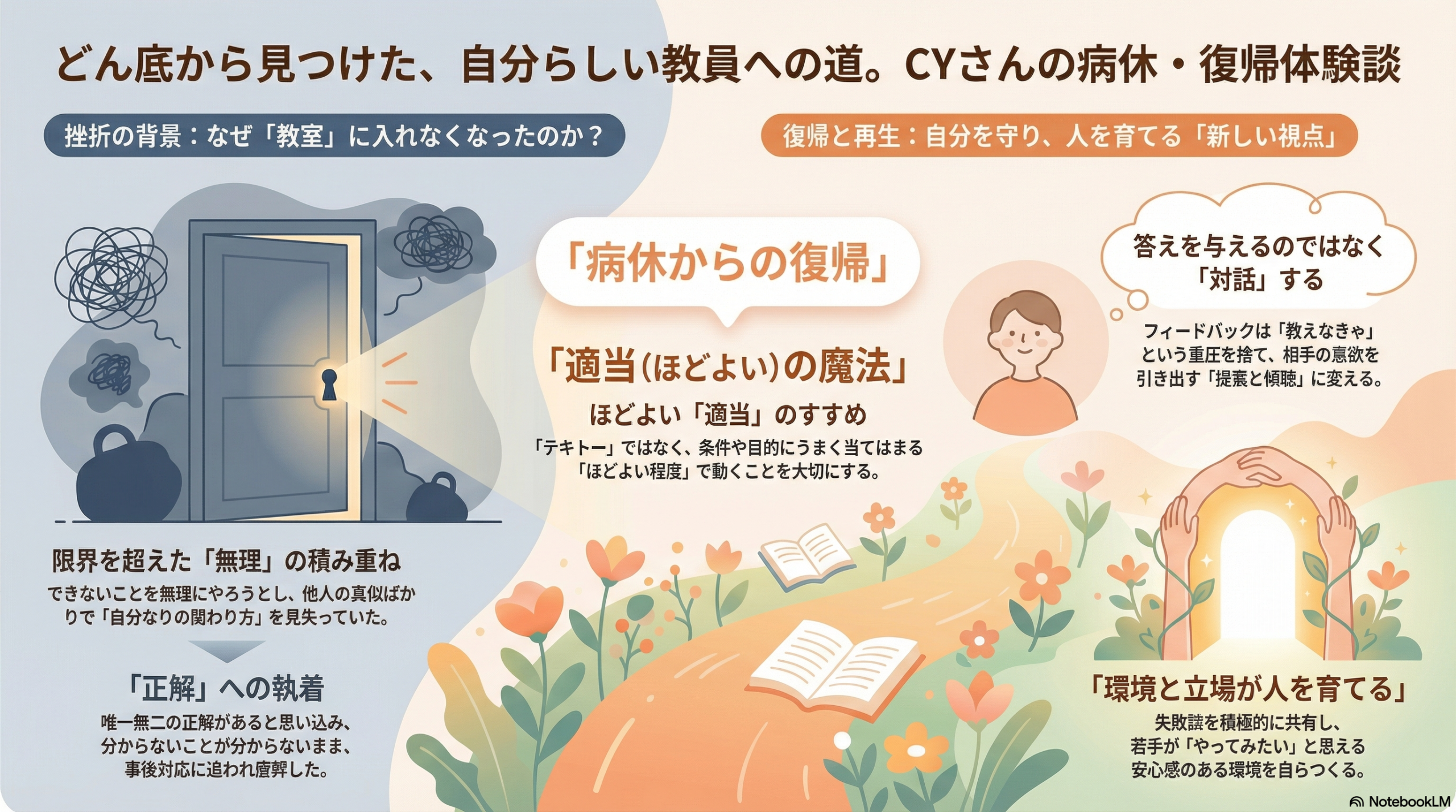 「折れても、教員人生は続いていく」 ことを体現しています。